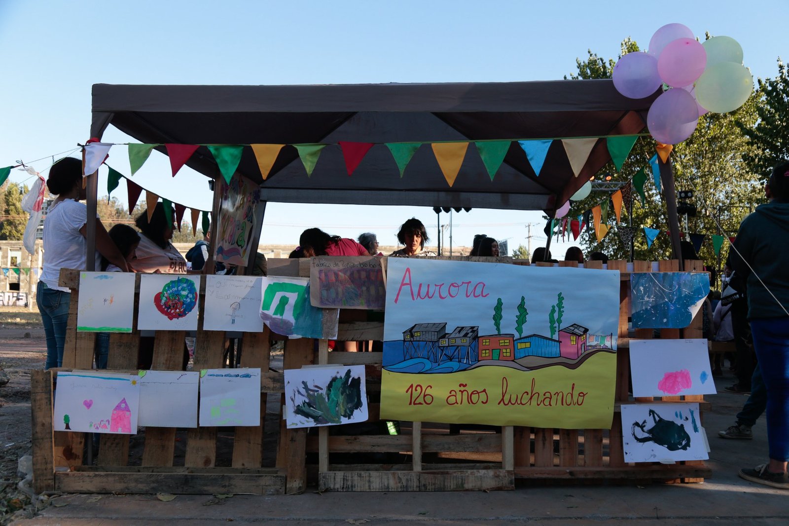 Desde el 2015 colaboramos junto a Cedeus y la JJVV de la Aurora de Chile en acciones por el rescate de su patrimonio cultural, como parte del tejido de redes y vínculos que nos interesa fortalecer en las comunidades. En febrero del 2018 participamos en la conmemoración de los 129 años de la Población Aurora de Chile junto a otras organizaciones y colectivos asociados (JJVV, Galaxia Surrealista, La Kapitana y otras).